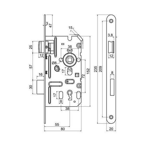 Zamki wpuszczane na klucz dozujący, BB, 20mm