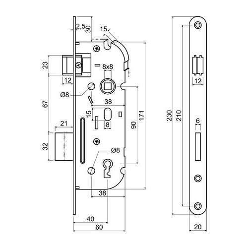 Zamki wpuszczane na klucz dozujący, BB, 20mm