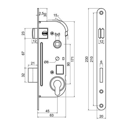 Zamki wpuszczane na wkładkę patentową PZ 20mm