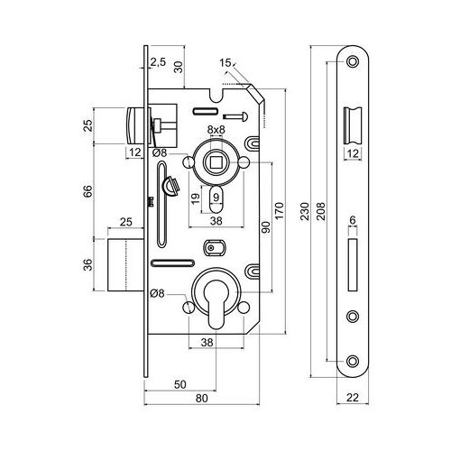 Zamki wpuszczane na wkładkę patentową PZ 22mm