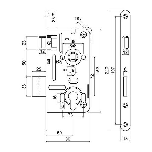 Zamek wpuszczany na wkładkę patentową PZ 18mm