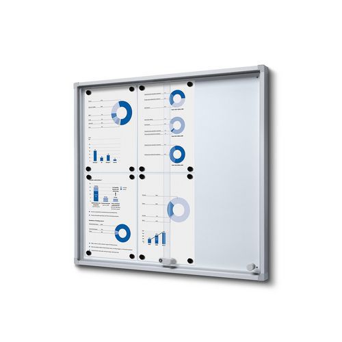 Zamykana gablota wewnętrzna Slim z przesuwanymi drzwiami szklanymi i narożnikami zabezpieczającymi, 6xA4