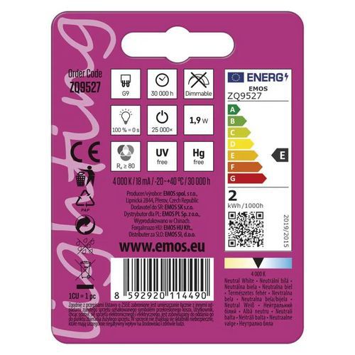- Żarówki energooszczędne LED z gwintem G9 i z wytrzymałą obudową z tworzywa sztucznego.