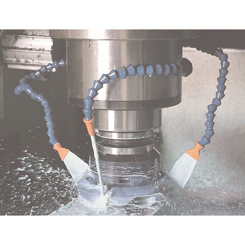 Utrzymuje stały przepływ. Niewrażliwy na wibracje – pozostaje na swoim miejscu nawet podczas obróbki. Prosty montaż. Wąż nieprzewodzący dla większego bezpieczeństwa. Wysoka odporność na chemikalia.