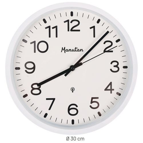 Zegar analogowy Manutan Expert, autonomiczny DCF, średnica 30 cm, kolor biały Zegar analogowy Manutan Expert, autonomiczny DCF, średnica 30 cm, kolor biały