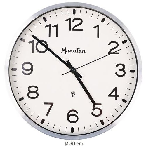 Zegar analogowy Manutan Expert, autonomiczny DCF, średnica 30 cm, kolor srebrny Zegar analogowy Manutan Expert, autonomiczny DCF, średnica 30 cm, kolor srebrny