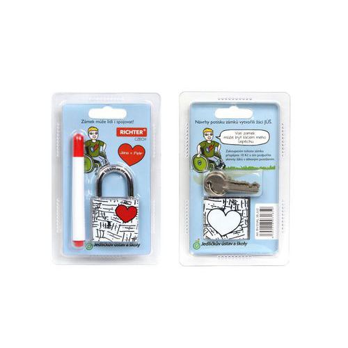 Żeliwna kłódka z kolorowym nadrukiem, średnica jarzma 6,3 mm, wysokość 19 mm, JU2
