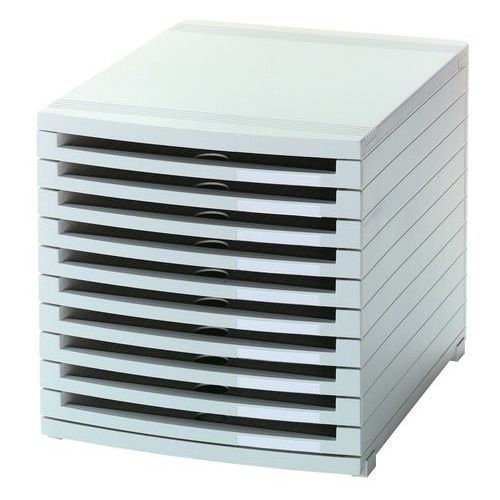 Zestaw 10 szufladek HAN Contur, polistyren, A4+, otwarte, szary