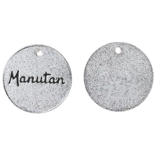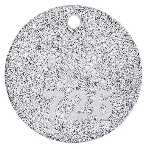 Aluminiowe żetony Manutan o numerach od 301 do 1000. Wytrzymałe i odporne na manipulacje. Wywiercony otwór do mocowania do pierścionka lub łańcuszka. Niezawodne i trwałe rozwiązanie identyfikacyjne. Wszystkie produkty Manutan są testowane i zatwierdzane przez nasze zespoły.
