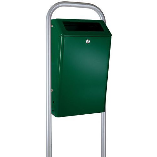 - Aluminiowy zewnętrzny kosz na śmieci z ognioodporną wyściółką. Dostępny w 3 kolorach. Mocowania podłogowe nie są dołączone.
