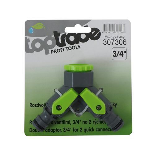 Złącze dwójnik z zaworami TOPTRADE, 3/4″ na 2 szybkozłącza