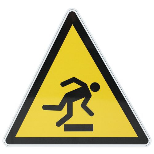 Znak ostrzegawczy Manutan Expert - Niebezpieczeństwo potknięcia się, aluminium, 100 mm