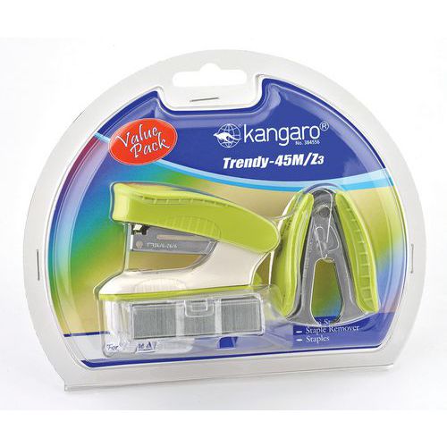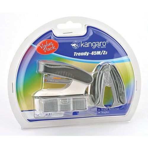 Zszywacz KANGARO Trendy-45M/Z3 + zszywki i rozszywacz, zszywa do 15 kartek, blister