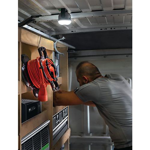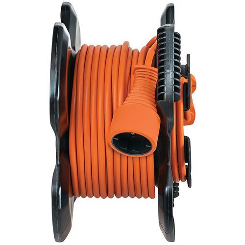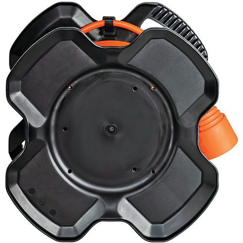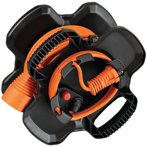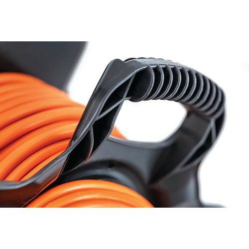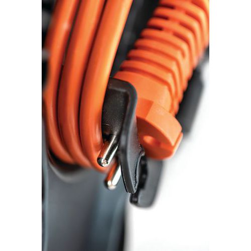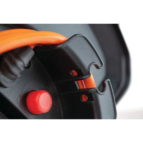 Kołowrotek ze wspornikiem z tworzywa sztucznego i gumy, który wytrzymuje duże obciążenia. Z uziemionym gniazdem i wyłącznikiem termicznym. Przewód zasilający o długości 1,50 m zakończony wtyczką ułatwiającą podłączenie do stałego gniazdka. Nadaje się do wszystkich urządzeń klasy II z podwójną izolacją: 1 gniazdo 2P 16A/230V~, 1 wtyczka 2P 16A/230V~ i wyłącznik termiczny. Lekki, praktyczny i kompaktowy. Zawiera 2 zintegrowane uchwyty.